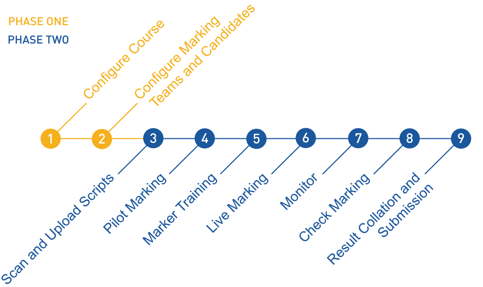 Marking of each course within MarkManager is an independent exercise. For any given course the marking process has two main phases, the first preparatory and the second beginning as soon as the examination scripts are collected and assembled from exam centres.